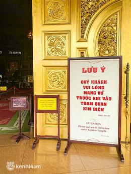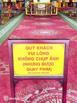 Thứ hai, ngay sau tấm biển mang vớ, bạn sẽ thấy một biển chắn trước đường vào Kim Điện yêu cầu khách không được chụp ảnh, nhưng… quay phim thì được.