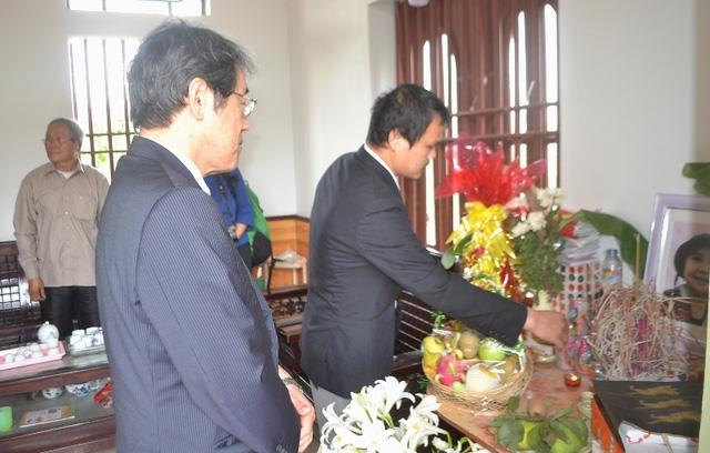 Sau khi đến nhà, Đại sứ Nhật Bản thắp hương bé Nhật Linh