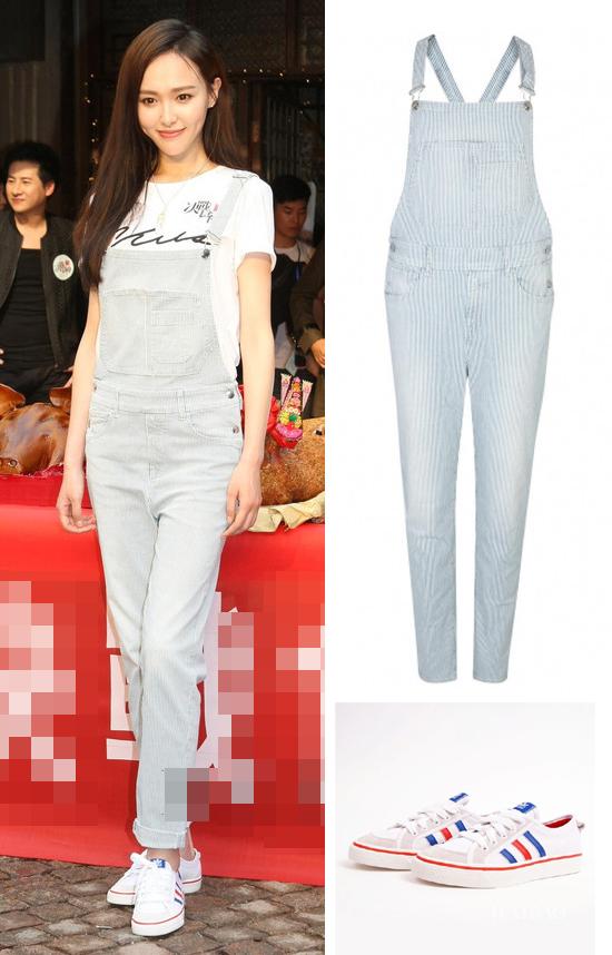 quần yếm, giày sneaker là bộ ba hoàn hảo giúp cô cải thiện thân hình gầy gò. Chiếc