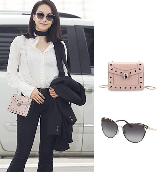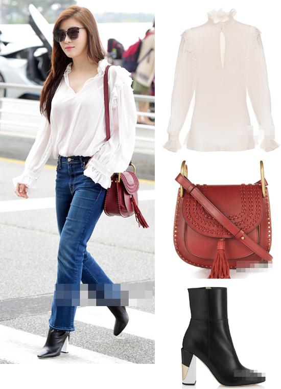 và túi đeo vai Chloe càng làm cô thêm nổi bật khi có mặt tại sân bay Incheon.