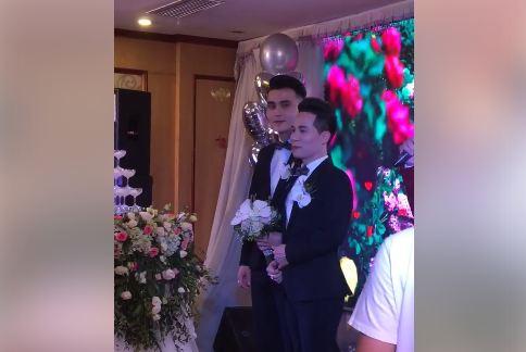 Theo đó, tối 7/5, đoạn clip ghi lại đám cưới của một cặp đồng tính nam ở Hải Phòng khiến nhiều người xôn xao. Theo tìm hiểu, chủ nhân của buổi lễ là Quốc Khánh - Thành Lợi. Ngày trọng đại của cả hai cũng diễn ra với đầy đủ nghi thức thông thường như rót rượu, mời rượu họ hàng, cắt bánh kem,... và đặc biệt là sự có mặt của gia đình 2 bên. Xem clip có thể thấy, họ toát lên vẻ rạng rỡ, hạnh phúc trong ngày vui nhất của cuộc đời.