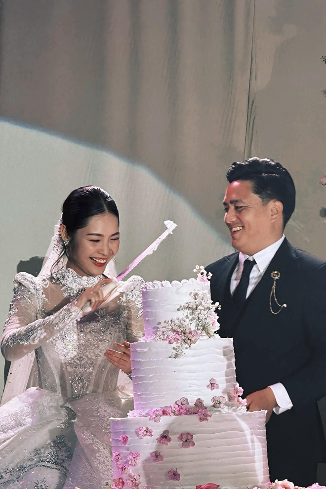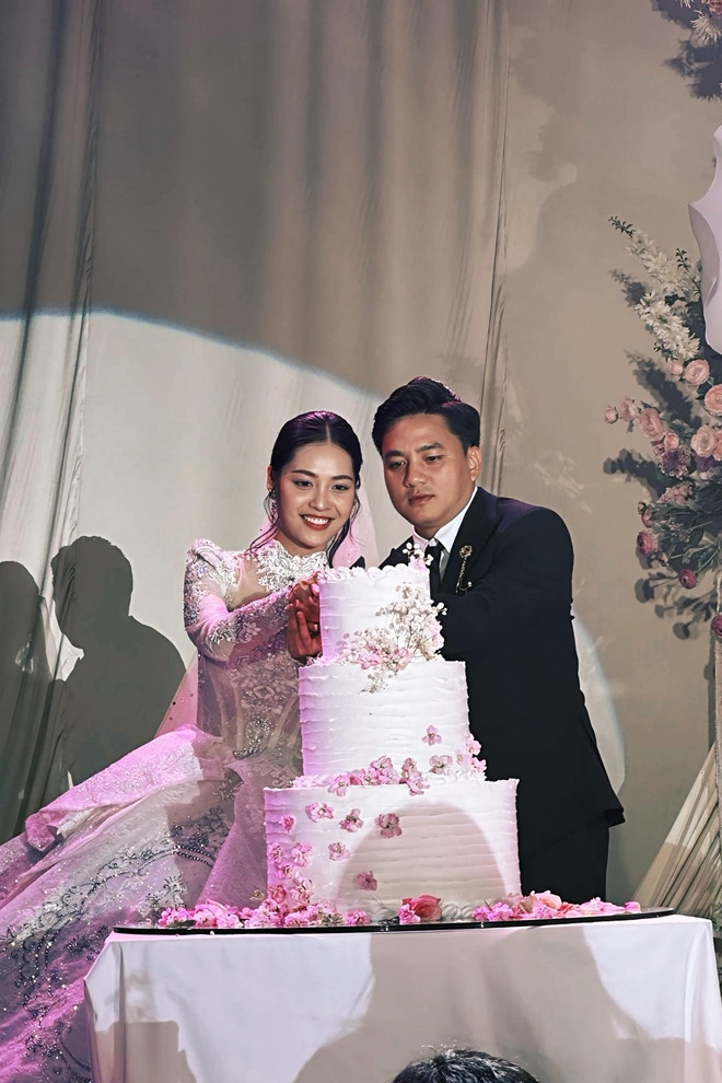Cặp đôi đã thực hiện đầy đủ các nghi thức cưới hỏi truyền thống bao gồm trao nhẫn cưới, rót rượu mừng và cắt bánh kem chung. Đặc biệt, trong phần cam kết, cả hai đã hứa với cha mẹ hai bên sẽ luôn nhường nhịn, chăm sóc nhau và cùng vun vén tổ ấm hạnh phúc. Buổi lễ kết thúc bằng nụ hôn ngọt ngào của đôi tân lang tân nương.