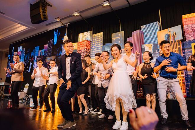 Cô dâu chú rể đã hóa thân thành những vũ công trên khấu và "quẩy" vô cùng nhiệt tình