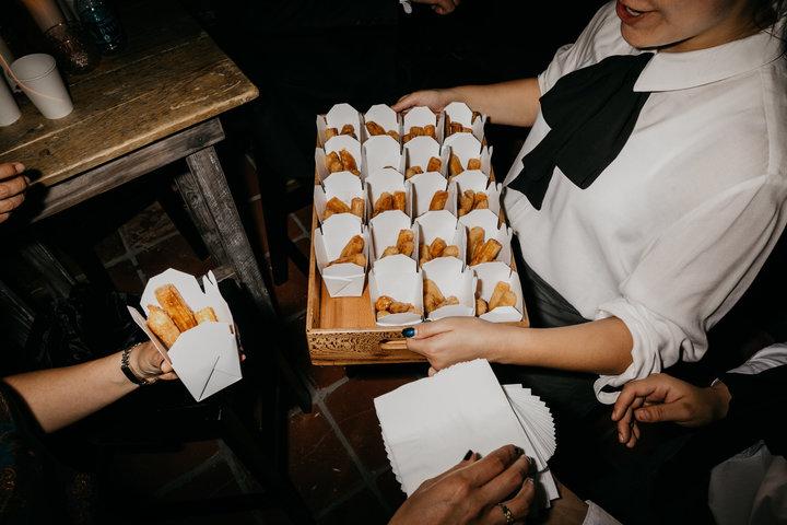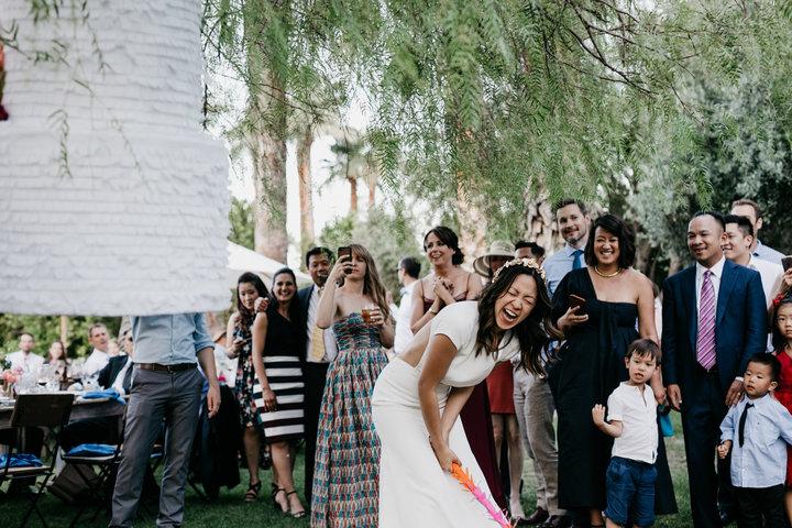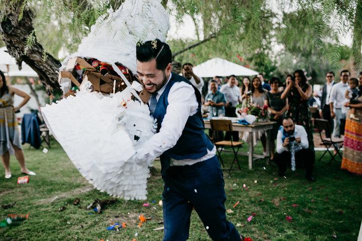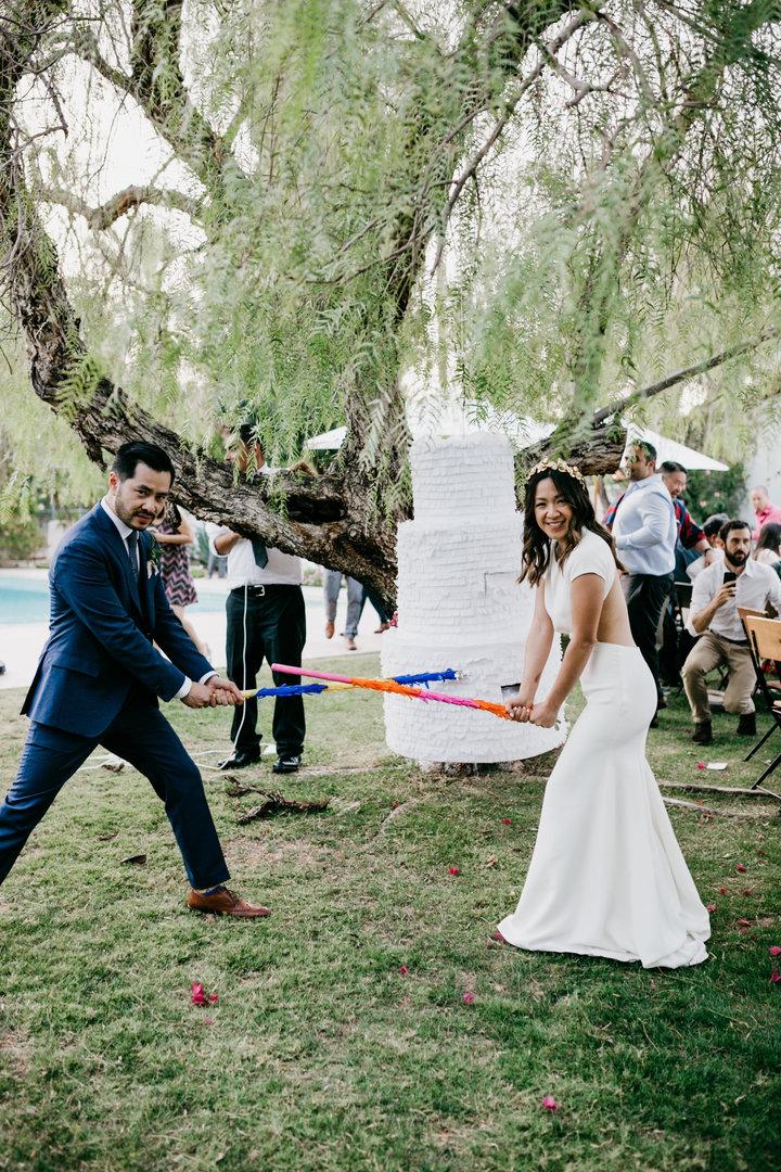Pinata hình bánh cưới trong hôn lễ của cặp đôi Thượng Hải được đặt riêng, với bên trong được lấp đầy bằng kẹo, khoai tây chiên, bóng bay, kính mát , đồ điện tử và đồ trang sức. Cả hai mong muốn những thứ bung ra từ bánh cưới pinata sẽ thật đa dạng và là món quà cho tất cả mọi người trong lễ cưới, từ người lớn cho đến trẻ em.