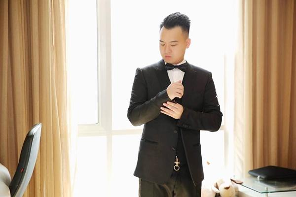 Chú rể xuất hiện lịch lãm trong bộ vest đen đắt tiền