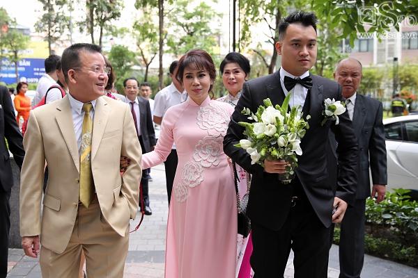 Mọi công việc chuẩn bị cho lễ rước dâu đã hoàn thành, chú rể Phạm Nghiêm Đức lịch lãm điển trai cũng xuất hiện.