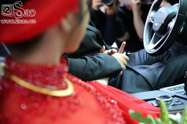 Sau khi làm lễ gia tiên theo nghi thức truyền thống, Diệp Lâm Anh cùng chồng xuống sảnh để lên xe hoa. Diện áo dài truyền thống màu đỏ, nữ diễn viên nở nụ cười rạng rỡ nắm tay thiếu gia 9x. Vợ chồng trẻ không ngại ngần hôn nhau trước sự chứng kiến của quan khách.