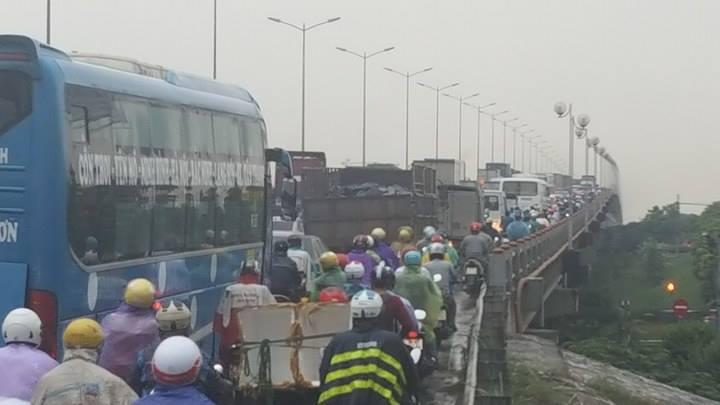 Ùn tắc kéo dài trên cầu Thanh Trì đến hơn 18h mới thông xe. Ảnh: Trần Thường