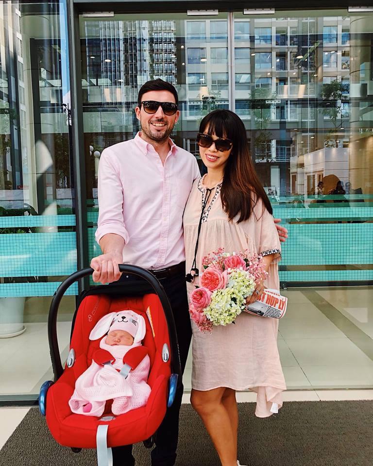 Đăng tải khoảnh khắc cả gia đình bên nhau, Hà Anh tâm sự: "Ba mẹ em vui sướng hân hoan khi đón em về nhà. Em mới ra đời có mấy ngày mà làm 'náo loạn' bao thứ trong cuộc sống của ba mẹ. Ba mẹ mệt nhưng nhìn thấy em đáng yêu lại thương. Em ngủ cứ rúc rúc vào gần mẹ, cái tay bé tí xíu lồng vào bàn tay mẹ. Em tính nết ham ăn và thiếu kiên nhẫn giống ba. Chưa kịp ăn chút là khóc nhặng xị, giọng rất ư là ai oán. Em rất ưa được khen, khen em xinh em mỉm cười ngay trong giấc ngủ, chê chút em mếu ngay nhìn tất tội. Vài đêm đầu ba mẹ cuống lên với em khi mẹ chưa nhiều sữa, mẹ em rớm nước mắt, em dừng khóc, hai mắt mở to nhìn mẹ rồi mếu, miệng run lên. Ba em lấy giấy lau nước mắt cho mẹ, ôm hai mẹ con vào lòng vỗ về, cả nhà mỗi ngày khám phá làm cách nào để hiểu em hơn, để phục vụ em được tốt hơn. Nhịp đập bé nhỏ của ba mẹ, mới ngày nào em chỉ là những nhịp đập tim dồn dập, giờ em đã xinh xắn và mềm mịn trong vòng tay ba mẹ. Myla thương yêu."