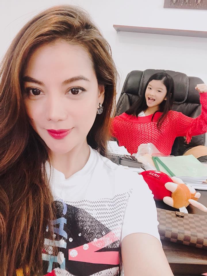 Chia sẻ hình ảnh bên con gái, Trương Ngọc Ánh bảo: "My big boss... có cái đuôi theo đi làm luôn"