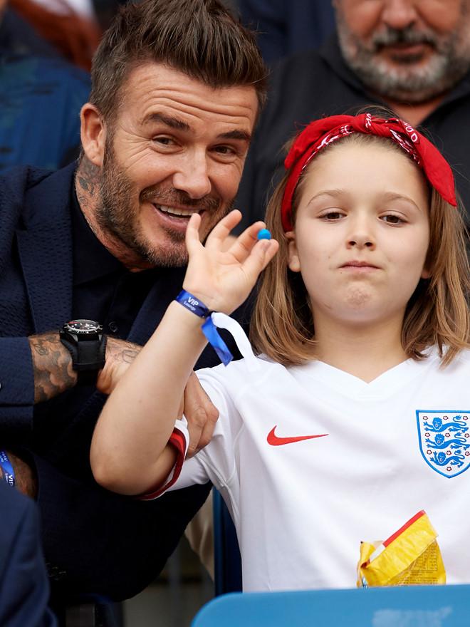 Huyền thoại làng bóng đá còn xăm dòng chữ "Pretty Lady Harper" (Quý cô xinh đẹp Harper) lên vai trái của mình bên cạnh một trái tim để thể hiện tình yêu với con gái cưng. Bên cạnh đó, ái nữ nhà David Beckham còn sở hữu lượng người hâm mộ “khủng” trên thế giới vì vẻ ngoài đáng yêu.
