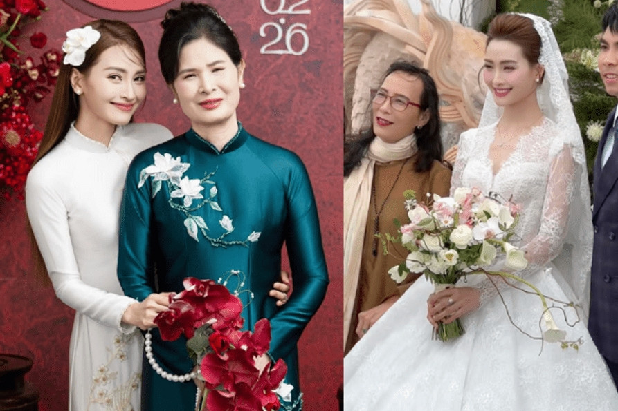 Phần xúc động nhất của buổi lễ đến khi mẹ cô dâu lên sân khấu đọc thơ tặng con gái và con rể. Đứng cạnh chồng, cô dâu không kìm được nước mắt. MC Huyền Trang bật khóc nức nở khi nghe những lời dặn dò của mẹ, trong khi chú rể nhẹ nhàng nắm tay an ủi.