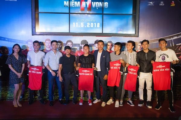 Buổi công chiếu đặc biệt vào ngày 6/5 vừa qua có sự tham gia của các chàng trai của đội tuyển Việt Nam: Bùi Tiến Dũng, Bùi Tiến Dụng, Hà Đức Chinh, Nguyễn Quang Hải và Đoàn Văn Hậu.
