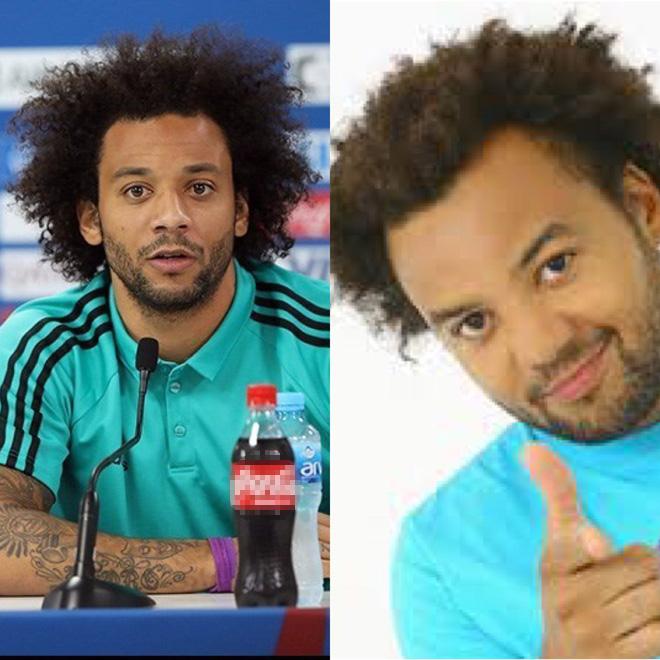 Hậu vệ trái Marcelo của Brazil có mái tóc xù mì khiến nhiều người nghĩ ngay tới diễn viên hài Fabrice Eboue. Đặc biệt, cả hai còn giống nhau ở cả tính cách hài hước, thích chọc cười đồng nghiệp.