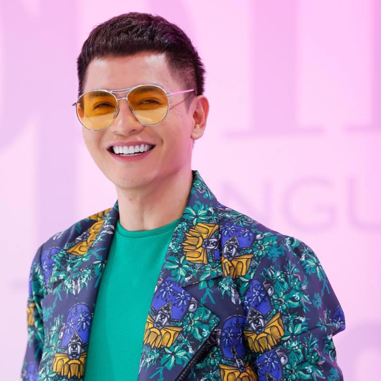 Giám khảo Nam Trung trong bộ trang phục thể thao tone xanh, áo blazer hoa nổi bật. Diện mạo này của Nam Trung đã qua bàn tay stylist Tô Quốc Sơn.