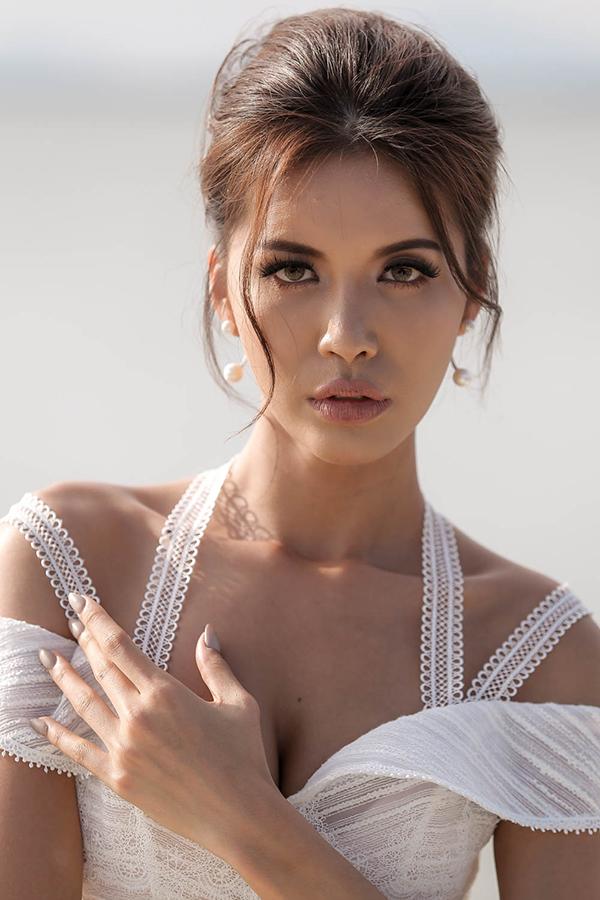 Minh Tú vô cùng quyến rũ với nước da bánh mật đặc trưng cùng phong cách trang điểm nude, mắt khói gợi cảm.