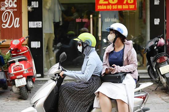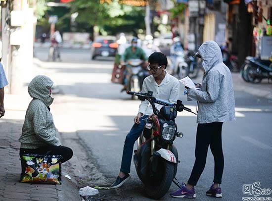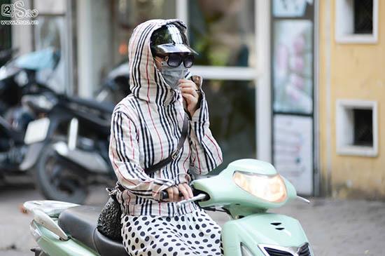 Người dân Hà Nội dùng đủ biện pháp để che chắn giữa cái nắng như đổ lửa.