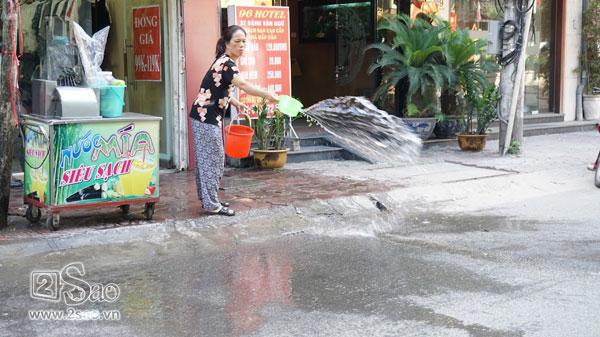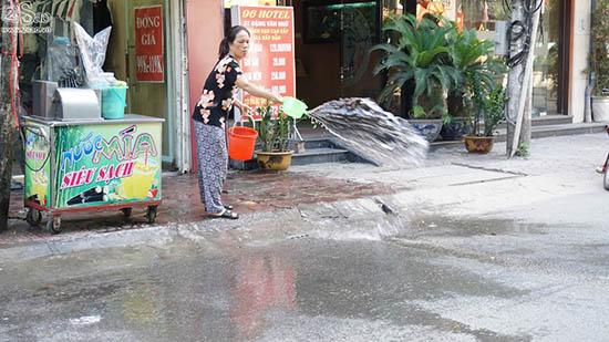 Vì hơi nóng hấp lên, nhiều người dân phải dùng nước để làm dịu cái nóng oi ả này.