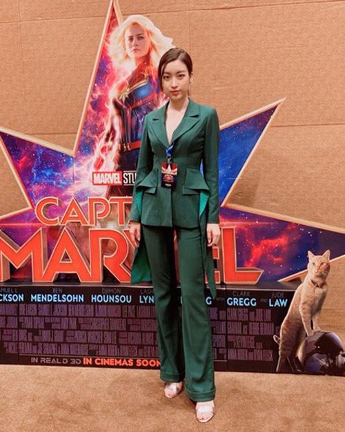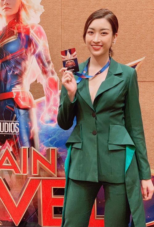 Đỗ Mỹ Linh dự sự kiện về điện ảnh ở Singapore. Suit là một lựa chọn hợp lý của Hoa hậu Việt Nam 2016 vì nó đủ lịch sự mà không quá cầu kỳ. Tuy nhiên màu sắc của bộ đồ lại khiến Mỹ Linh bị độn thêm cả chục tuổi.