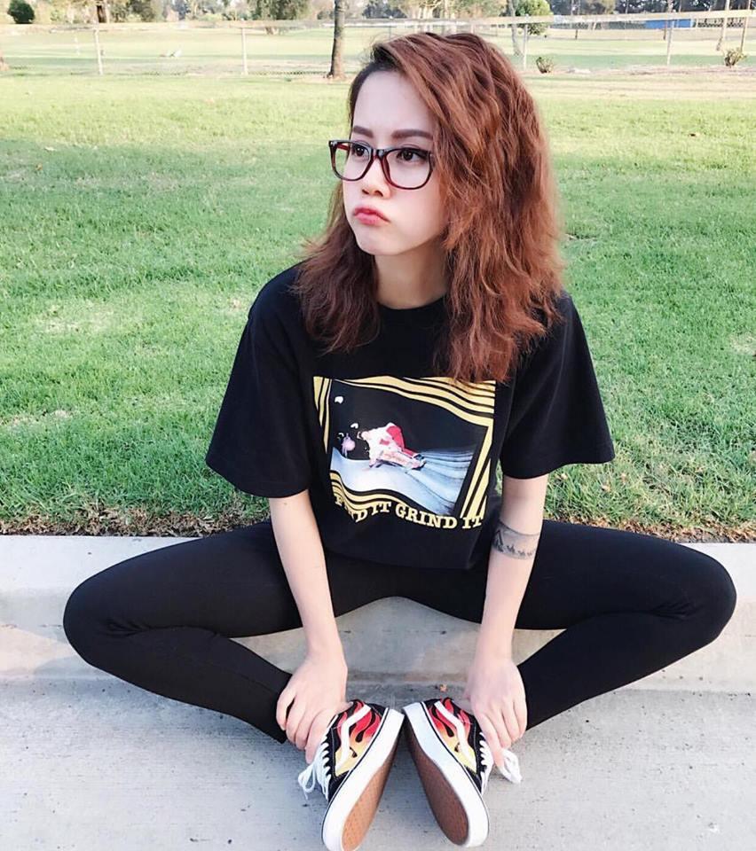 An Nguy trung thành với phong cách trẻ trung cùng set đồ đen basic mix giầy sneaker trong street style tuần này