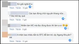 "Giấy kết quả rõ ràng, bộ không biết phân biệt quán quân là ai hả? Làm MC như vậy hả? Hay ban tổ chức cho tiền bắt làm vậy?"; "Anh nhận bao nhiêu tiền từ ban tổ chức để làm vậy?";