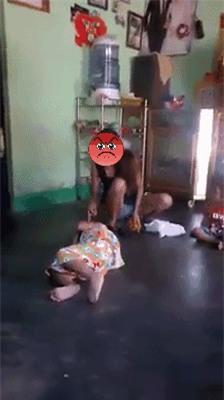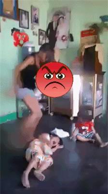 Đứa trẻ nằm khóc dưới sàn nhà không được dỗ dành, thay vào đó là những cái đá, đạp của người phụ nữ. Không chỉ có vậy, người đàn bà này liên tục trừng mắt, quát mắng và tát để bé gái... hết khóc.