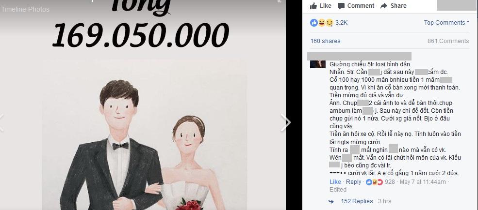 Một người dùng mạng bình luận rằng: "Tiền cưới mà nhiều như này thì thôi chúng mình về ở với nhau luôn rồi để dành tiền này mà đi du lịch cho sướng..."