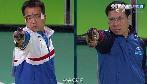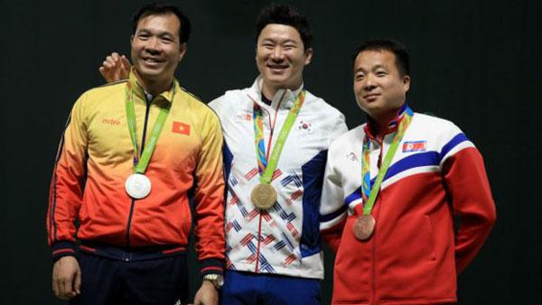 Hoàng Xuân Vinh và xạ thủ người Hàn Quốc Jin Jong-oh