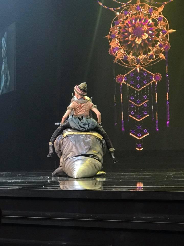Gây shock nhất là thí sinh hóa thân thành cô bé rừng xanh, cưỡi hóa thạch khủng long ra sân khấu.