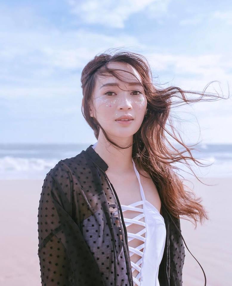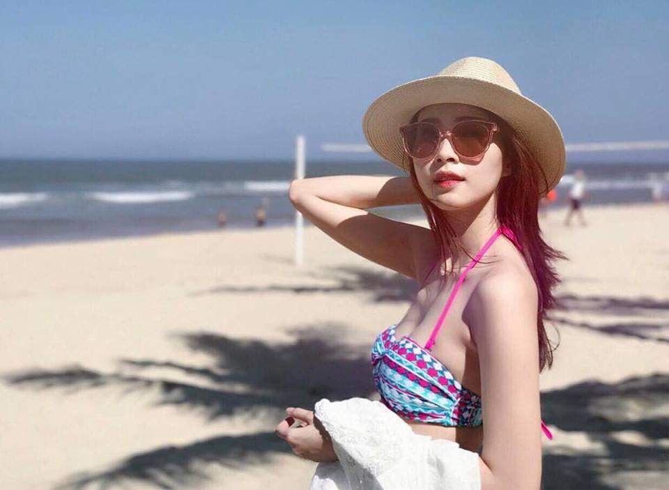 Châu Bùi cũng vừa tận hưởng chuyến du lịch ở Hạ Long. Cô nàng sinh năm 1997 sở hữu số đo 3 vòng chuẩn siêu sexy trong bộ bikini màu nâu đất.