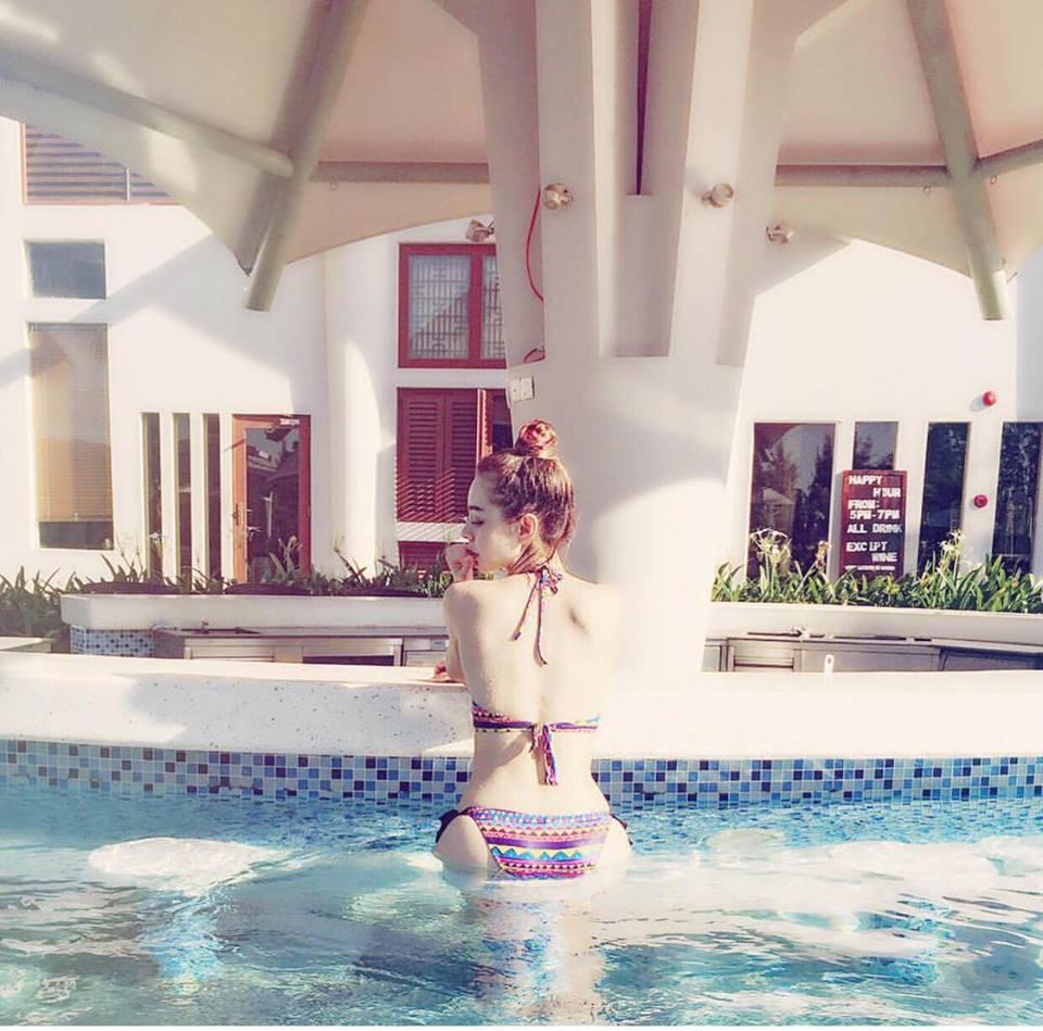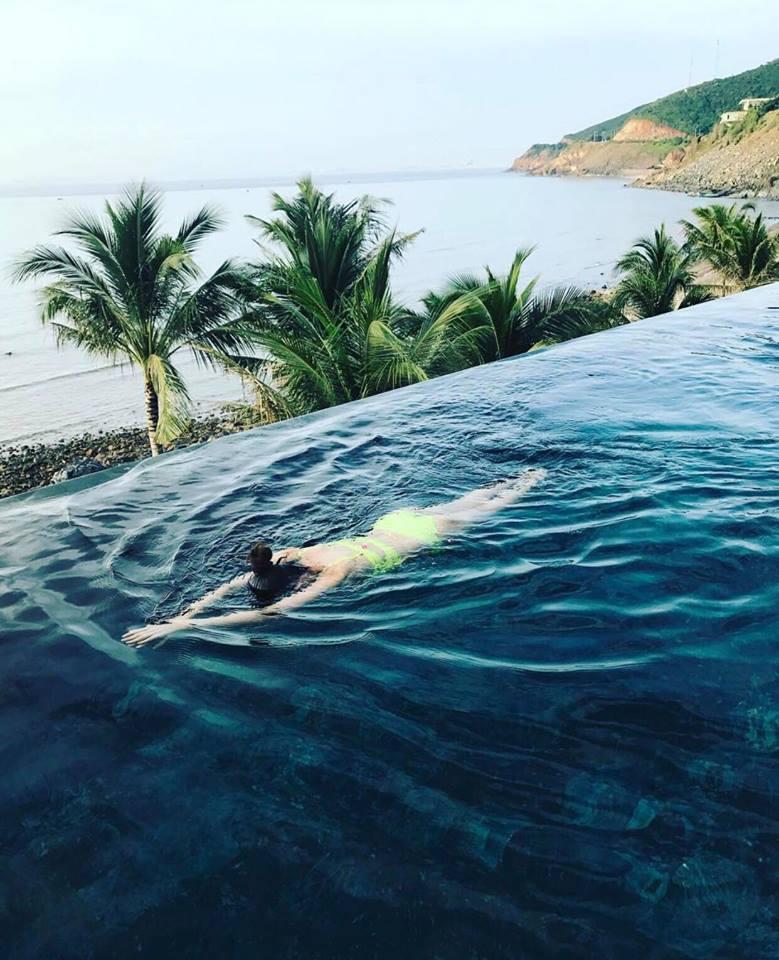 Lê Hà cũng nhanh chóng up date hình ảnh tại bể bơi một resort ở Nha Trang.