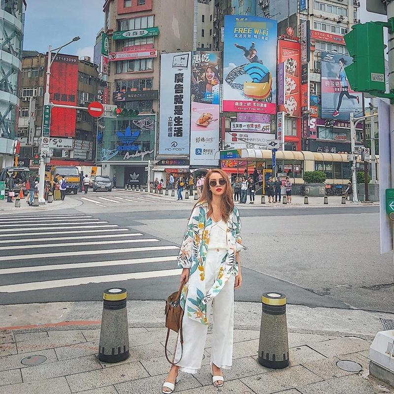 Sam cũng khoe street style ngập tràn sắc hoa trong mẫu váy từ thương hiệu bình dân.