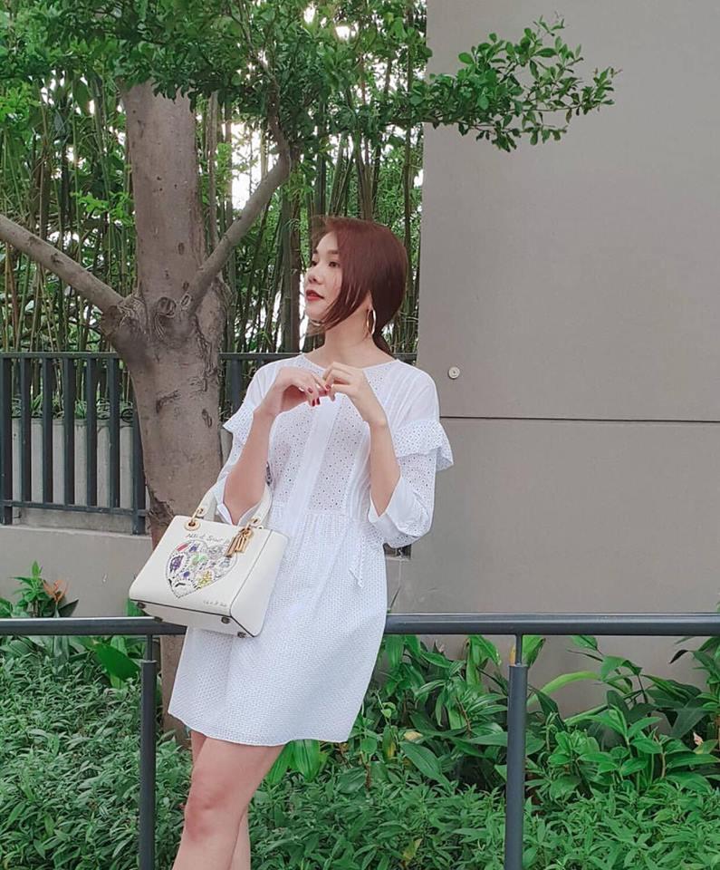 Chán style menswear, Thanh Hằng khoe vẻ đẹp nữ tính với đầm ren trắng tinh khôi.