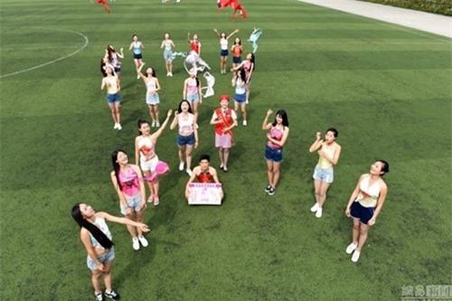 Không chỉ có các nữ sinh mà một số bạn nam cũng mạnh dạn mặc áo yếm đứng hàng cuối và cùng hỗ trợ các bạn nữ. (Ảnh: Internet)