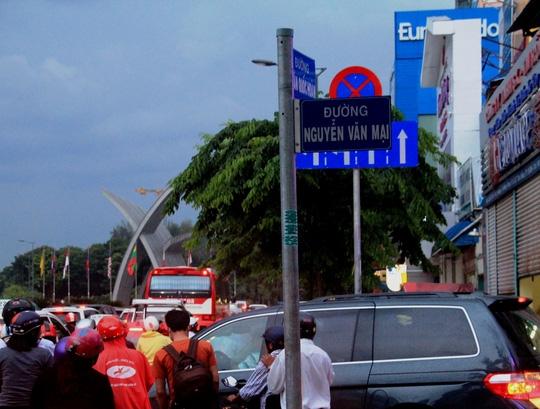 Nhiều phương tiện chuyển làn để qua các giao lộ, khiến tình hình ùn ứ trên đường Trường Sơn và các tuyến đường kế bên càng trở nên căng thẳng