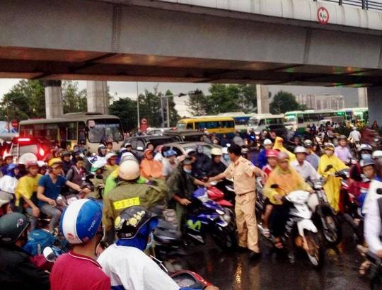Hình ảnh này là cảnh ùn ứ tại ngã tư Thủ Đức (giáp ranh quận 9 và Thủ Đức, TP HCM) sau cơn mưa