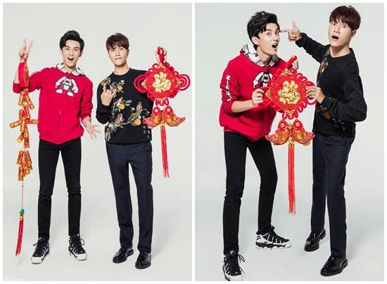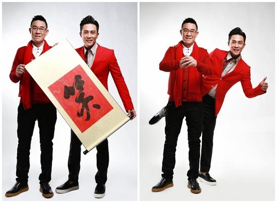 Hai diễn viên là Trần Khôn và Ngô Lỗi nhí nhố đùa giỡn trong bộ ảnh chúc Tết.