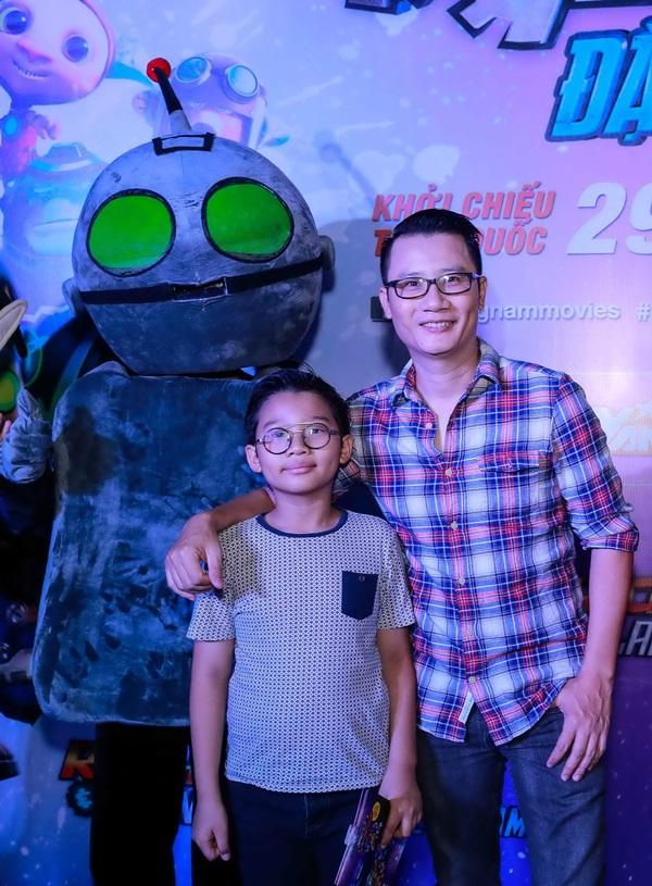 Bé Tê giác rất hào hứng khi được bố Hoàng Bách dẫn đi xem phim hoạt hình.