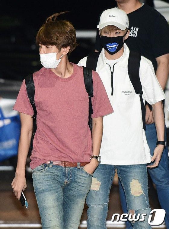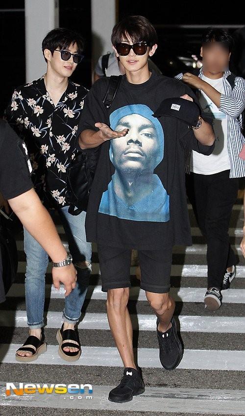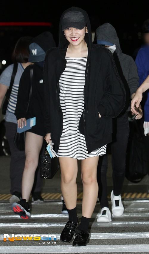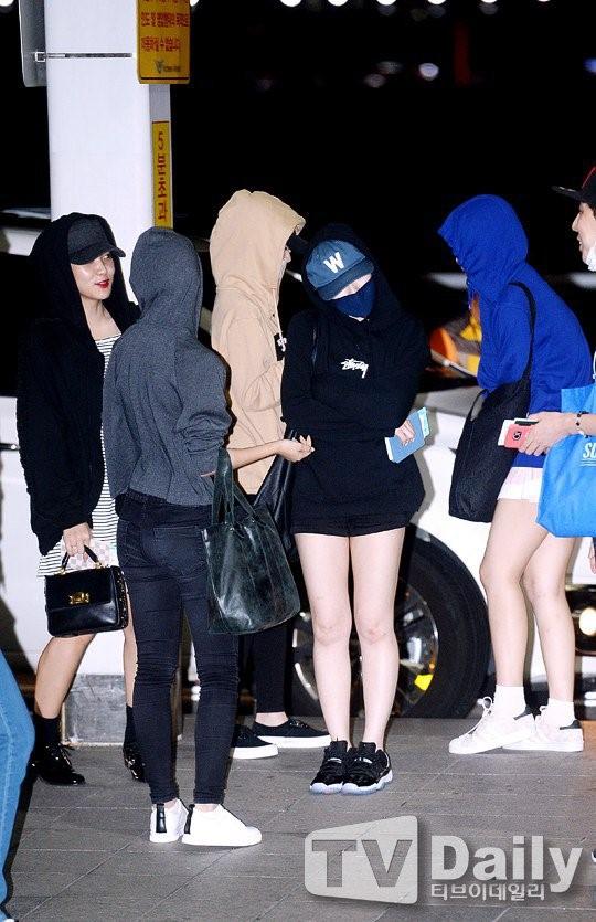 Taeyeon - trưởng nhóm SNSD diện sơ mi và quần shorts, sắc mặt khá mệt mỏi.