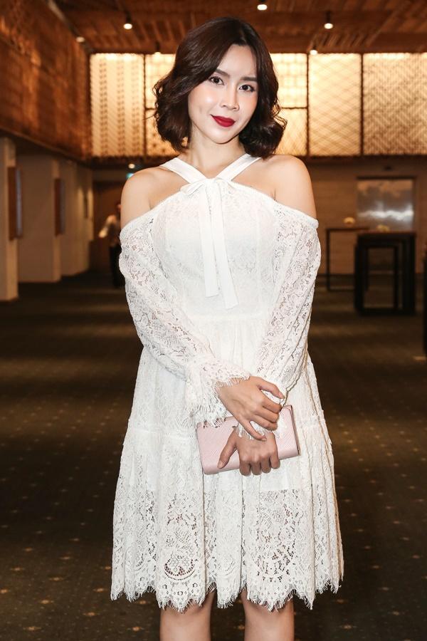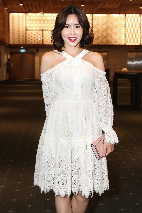 Lưu Hương Giang lựa chọn váy trắng đơn giản khoe vai trần