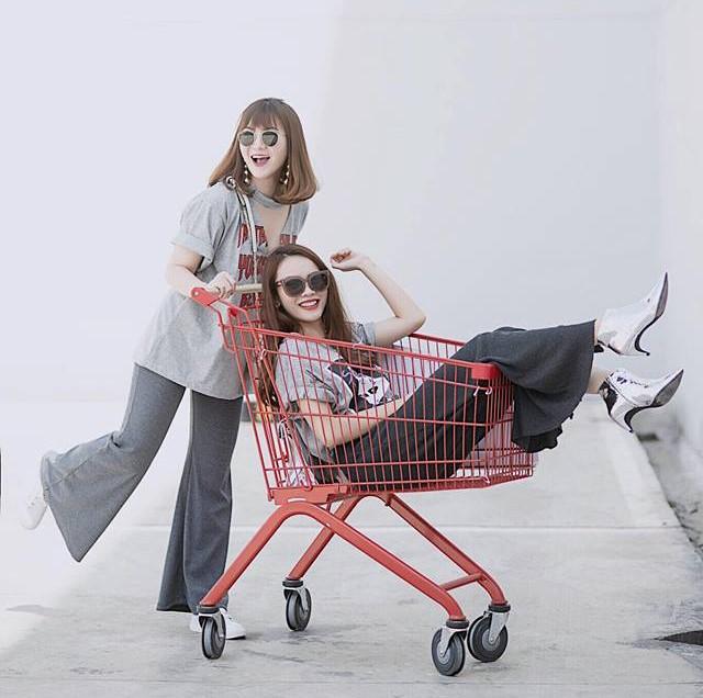 Tuyến Lan - Lê Thuý diện trang phục đồng điệu khi dạo phố Sài thành.