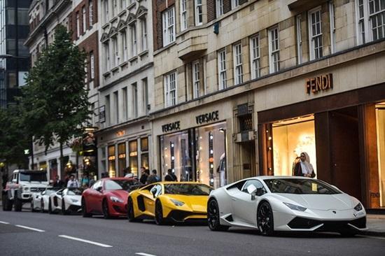 Nếu bạn muốn chiêm ngưỡng dàn siêu xe đang có mặt tại Anh lúc này, hãy đến những con phố với các cửa hàng thời trang nổi tiếng như Versace hay Fendi trong khu Tây Nam London. Đó là điểm dừng mua sắm thỏa thích của các đại gia Ả Rập không thể bỏ qua tại London.