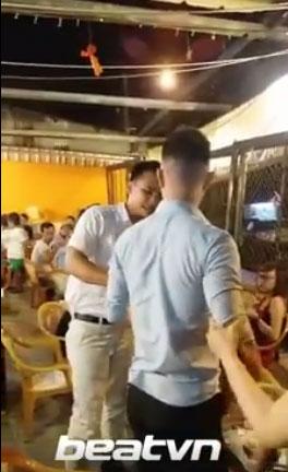 Theo như đoạn clip thì vị khách này đi cùng một nhóm bạn, khi xảy ra sự việc một bạn gái ngồi bên cạnh đã đứng lên can ngăn không cho vị khách này nổi nóng và gây sự với anh chàng hát rong.