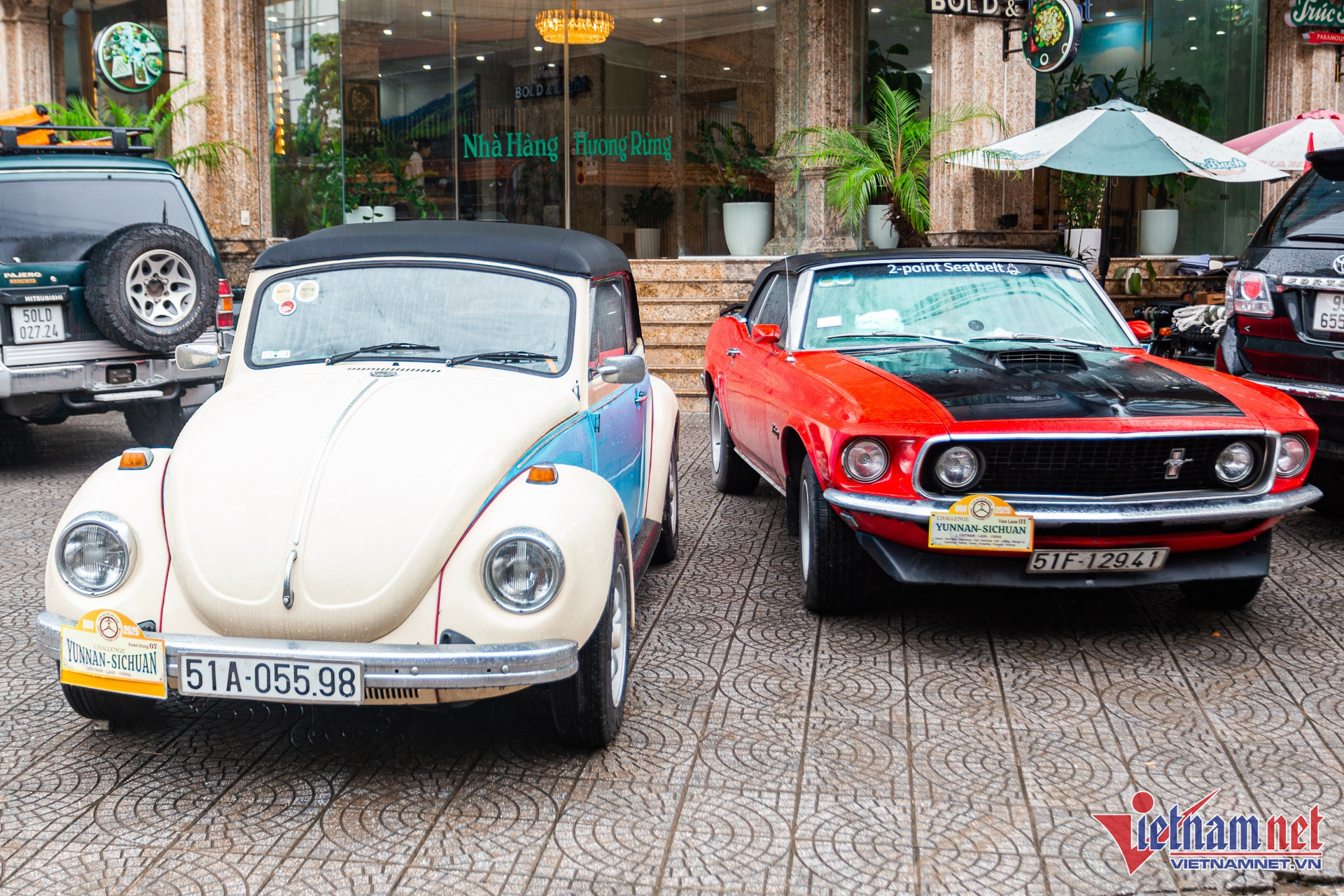 Dẫn đầu đoàn xe là chiếc Ford Mustang Convertible phiên bản Mach 1, đời 1969 và thuộc thế hệ thứ nhất (sản xuất từ năm 1964 đến năm 1973). Được biết, số lượng Mustang Mach 1 tại Việt Nam rất ít, chỉ vỏn vẹn 1-2 chiếc, có giá trị cao hơn nhiều chiếc Mustang đời mới ở nước ta.