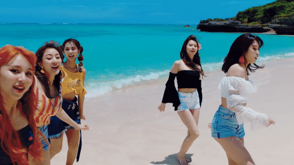 Điểm giống nhau đầu tiên là khung cảnh trong MV. Trời xanh, biển xanh và cát trắng là những hình ảnh rất bình thường, có thể thấy trong bất kỳ MV nào. Song, những cảnh quay giữa Dance The Night Away và Party lại giống nhau đến kỳ lạ.