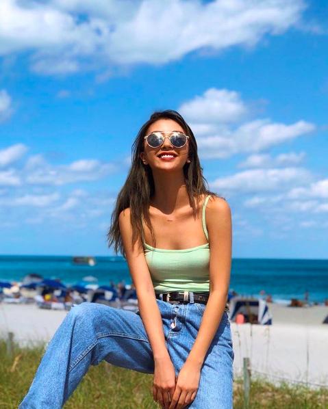 Mới đây, nàng hot girl 1,7 triệu followers cũng vừa đăng 1 khoảnh khắc rất xinh tươi của mình lên Instagram. Đây là tấm ảnh được chụp ở Mỹ, trời xanh, mây trắng, còn Quỳnh Anh thì như thường lệ - vẫn rất xinh. Thế nhưng điều khiến dân tình tò mò và quan tâm nhất lại không đến từ nhan sắc của cô nàng...