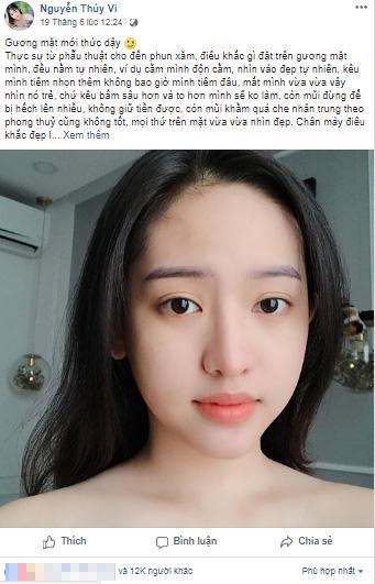 Cũng trong lần chia sẻ này,”hot girl Cà Mau” cho biết nhiều người khen cô sở hữu “khuôn mặt non choẹt”. Sau khi đăng tải trên trang cá nhân, dòng chia sẻ này nhanh chóng thu hút 12 nghìn lượt thích. Đa phần cho rằng Thúy Vi là cô gái “thật thà và thẳng thắn nhất showbiz”.