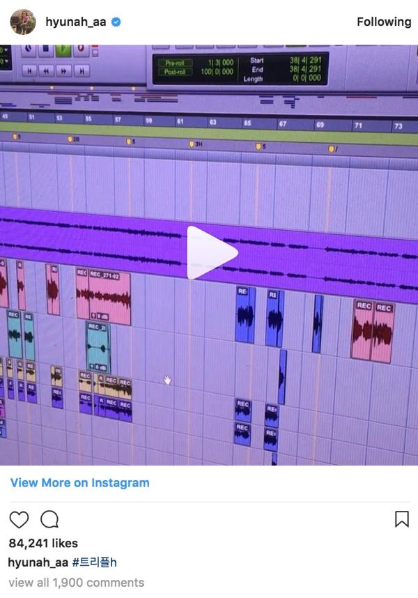Đồng thời, bên dưới clip nhá hàng này, Hyuna cũng đặt hashtag #TripleH bằng tiếng Hàn, gián tiếp ám chỉ sự trở lại của nhóm nhạc hỗn hợp nam – nữ thế hệ hai của nhà Cube.