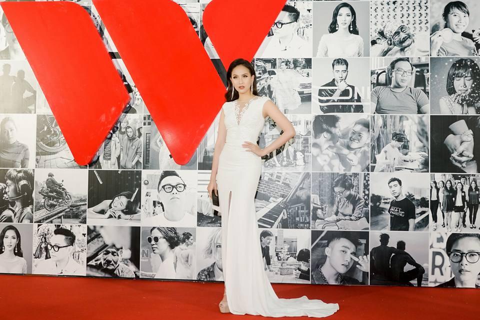 Hay chỉ cần một chiếc đầm đuôi cá ôm sát xẻ ngực sâu thế này là Khánh Ngân đã đủ thu hút mọi ống kính.