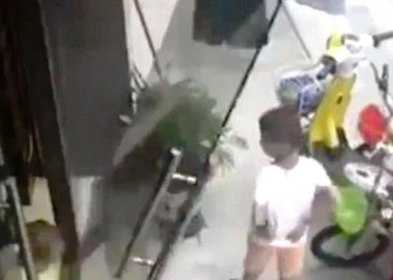 Trong đoạn video, có thể thấy một cậu bé khác đã đẩy cửa bước ra từ phía trong cửa hàng mua sắm.